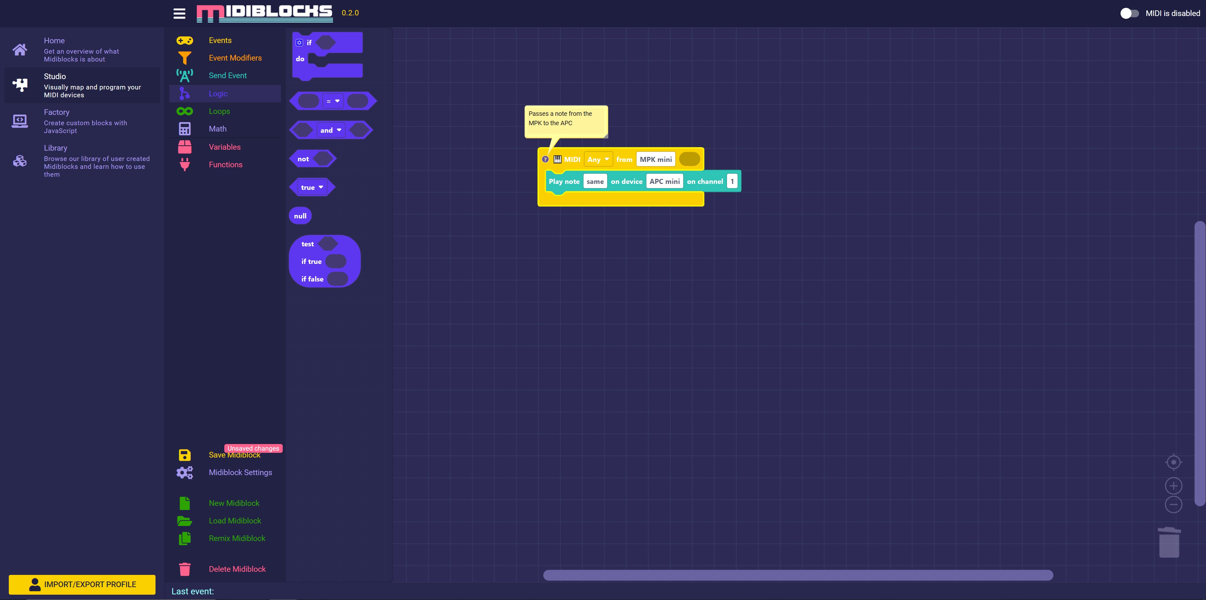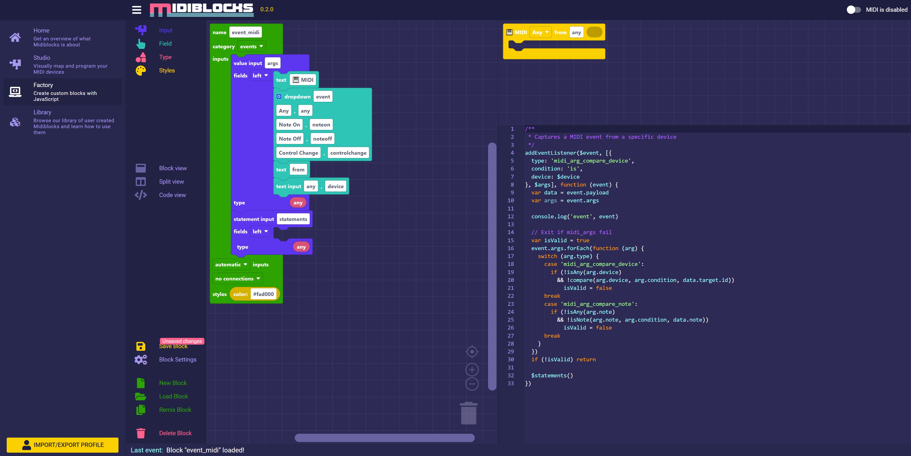 Update Feb 10th, 2023 - This is an old re-up from 2020 that was about 2 months behind the public demo here: https://midiblocks.firebaseapp.com/