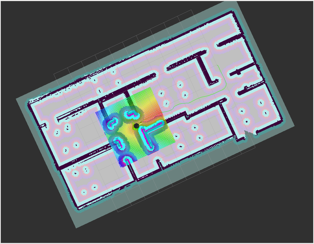 $ ./test_navigation.shYou can press on the 2D Nav Goal button inside RViz and point in different locations inside the map to let the robot plan paths insire the environment