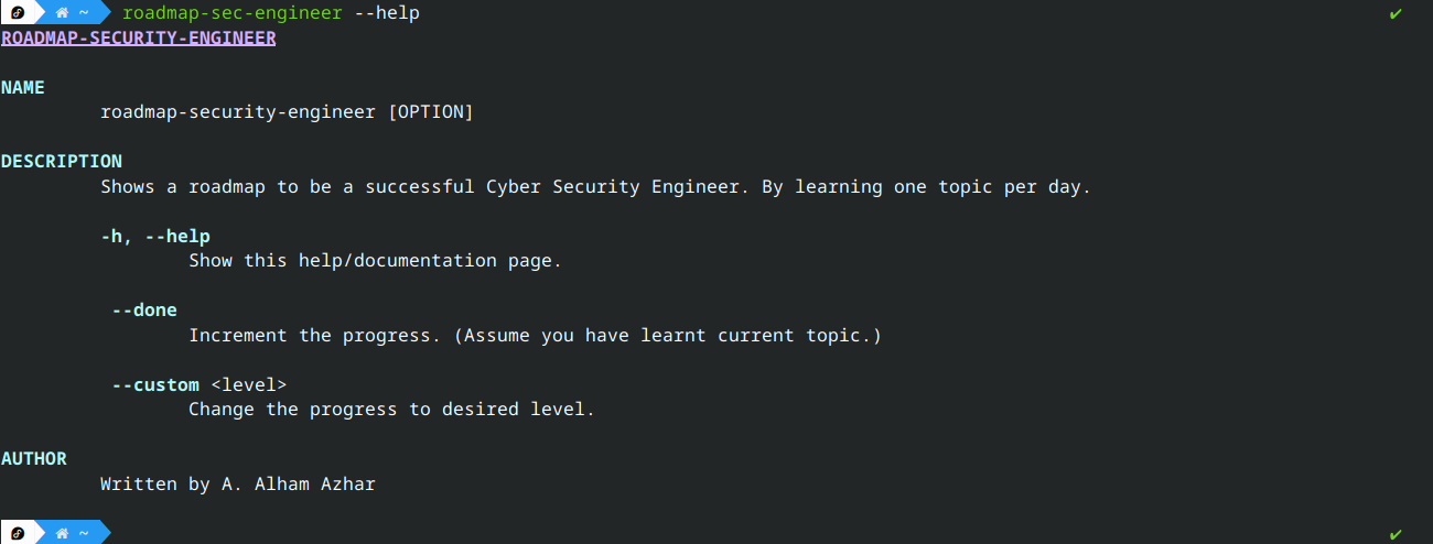 roadmap-sec-engineerbinary to/usr/local/bin/to use it as a regular Linux command:sudo mv roadmap-sec-engineer /usr/local/bin/
