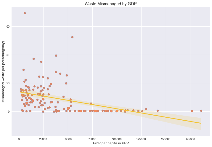 - Mismanaged waste decreases with an increase in country's GDP per capita