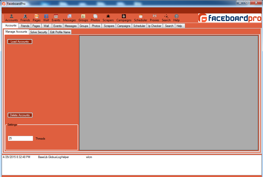 Accounts Management: This is one of the most advanced feature of faceboardpro. You can upload, multiple accounts, monitor active and inactive accounts, friends and followers, of your Facebook accounts in a single click. You can also change your profile name and language of the uploaded account.