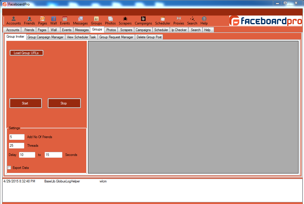 Group Management: This feature provide complete management of your Facebook group. You can manage your group campaign, view scheduler task, send group invite, accept group request, add or delete group post. The best part is you can manage multiple post per group, use targeted group URLs as well as post video URL as image with scheduling option.