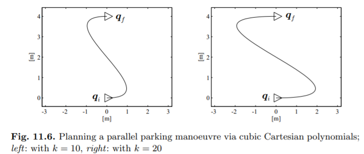ROS implementation of trajectory planning and tracking for non-holonomic mobile robots. The algorithms were implemented from chapter 11 in Robotics Modelling, Planning and Control by Siciliano et al. The code was tested on TurtleBot3 Burger, both in simulator and on a real robot. All formulaes and figures below are from chapter 11. Please see the full report for further explanation, report.pdf.