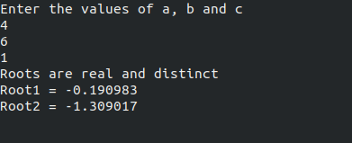 }/*Program to print roots */