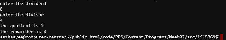 } /* To find quotient and remainder */
