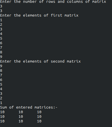 printf("\n Entered Matrix: \n");