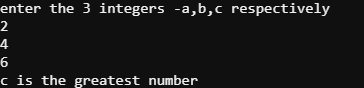 printf("c is the greatest number \n",z);