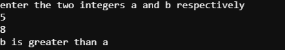 printf("b is greater than a\n",b);