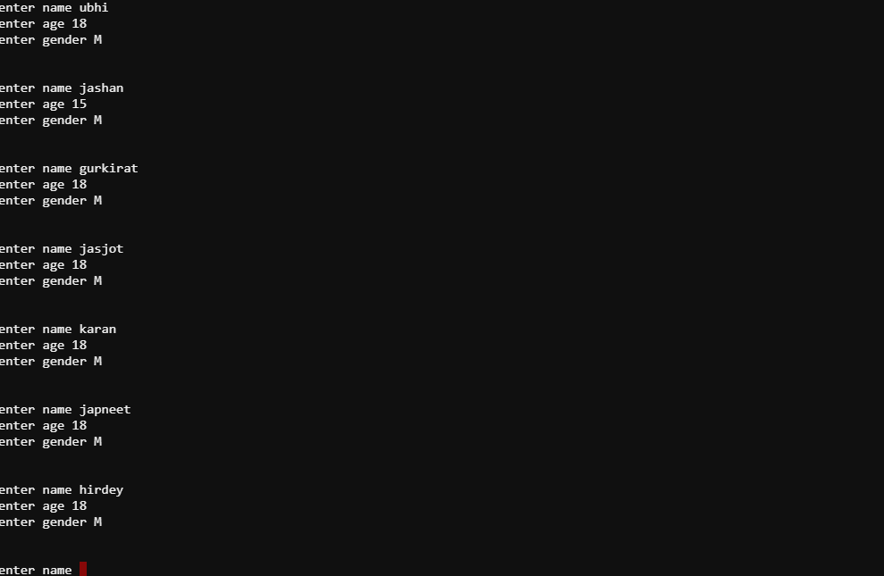 printf("Records of the 10 students are here");
