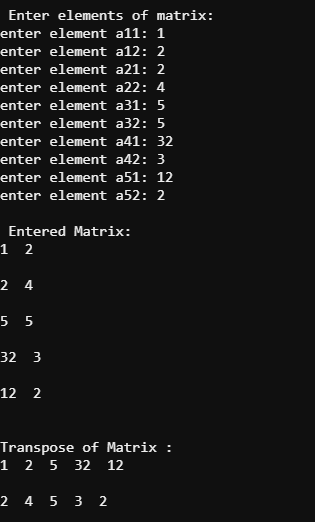 printf("\nTranspose of Matrix :\n");