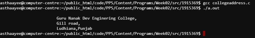 printf("\n\t\t\tLudhiana, Punjab\n");