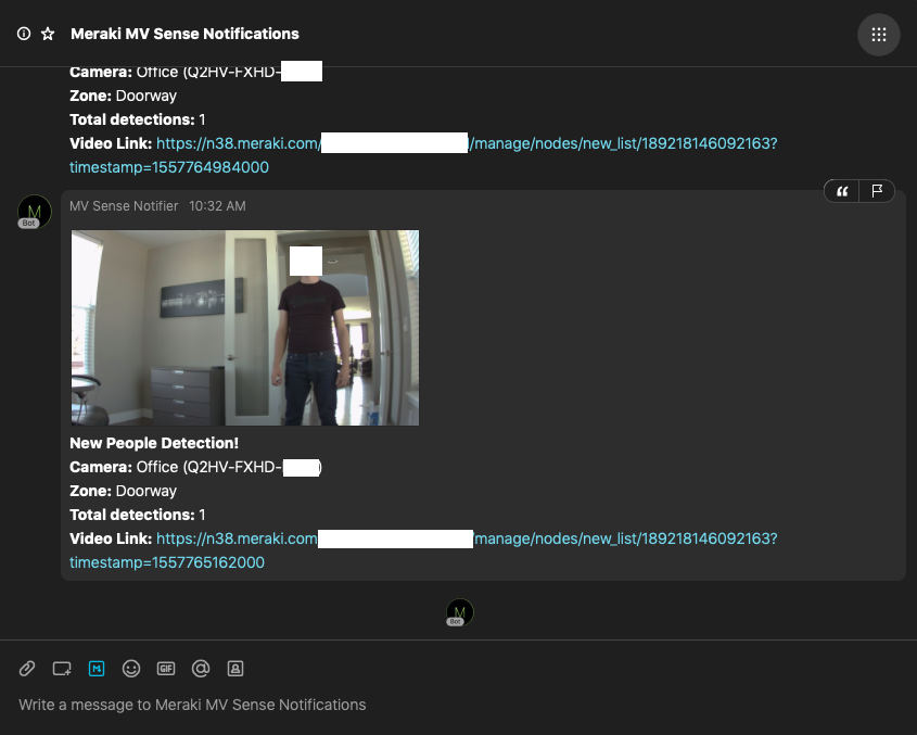 This is an extension/rewrite of the Meraki Camera Notification script found here: https://github.com/CiscoDevNet/Meraki-Camera-Notification