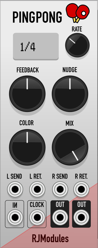 Ping Pong is a clock-synced ping pong delay. Includes dotted and triplet time signatures, a "nudge" knob for making slightly-off delays, and a 0-200% feedback mode which allows you to create amazing - but dangerout - feedback swells.