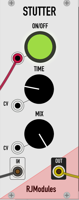 It's a digital glitch effect! Use the main on/off button (and related input) to turn the looper on and off, then use the time knob (controllable with CV) to adjust the size of the stutter. Also has a mix knob.