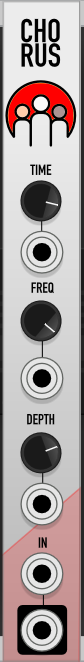 Chorus is a simple 3HP chorus effect with CV-adjustable delay time, frequency and depth.