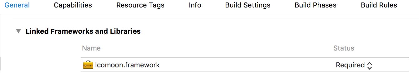 Icomoon.frameworkto your Xcode project by following the import instructions below.