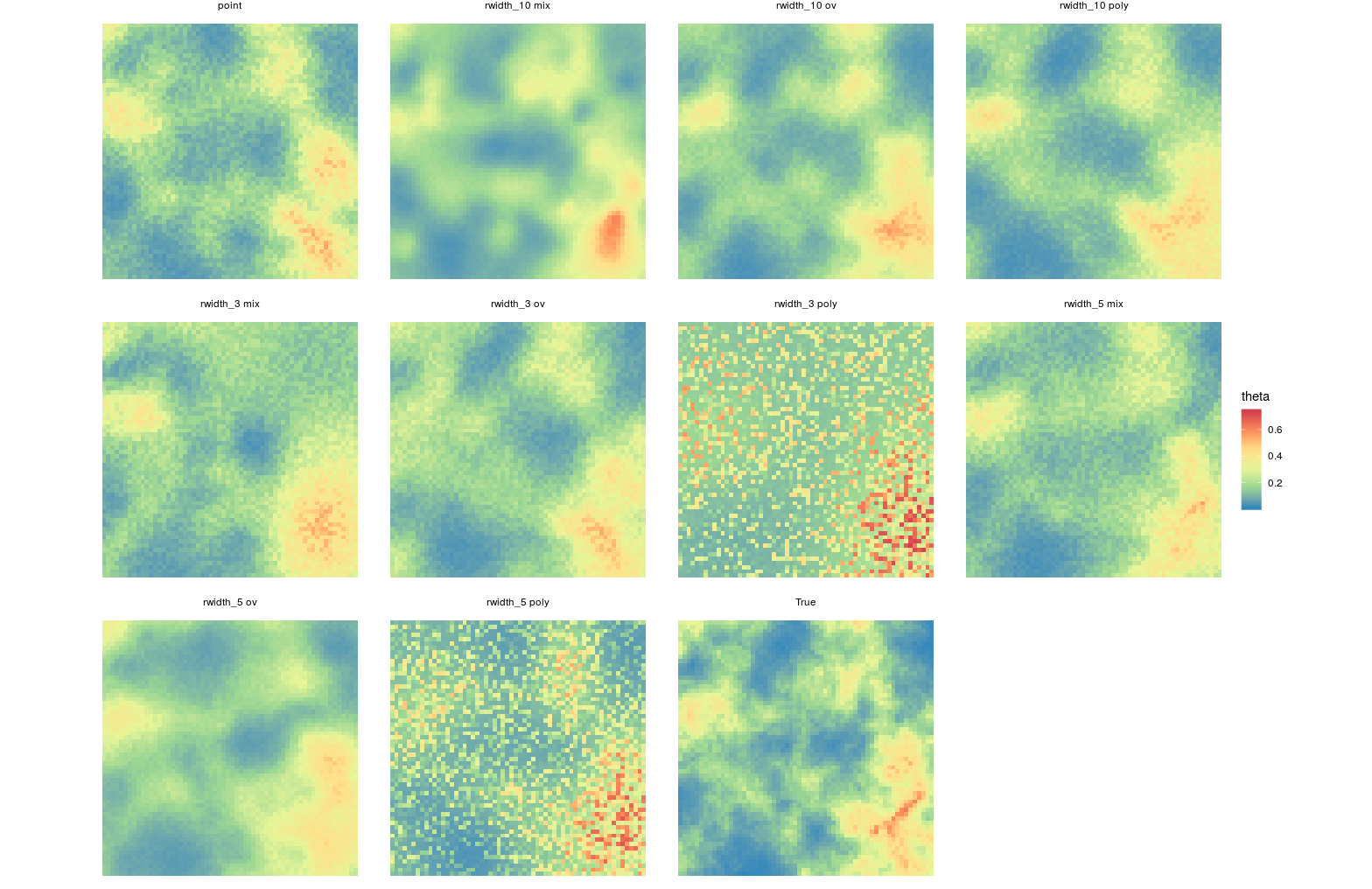 A package for code to simulating and estimating latent spatial probability fields when your data comes in the form of both point and polygons. The code base includes functionality both simulation and estimation functions for a number of different sampling strategies.