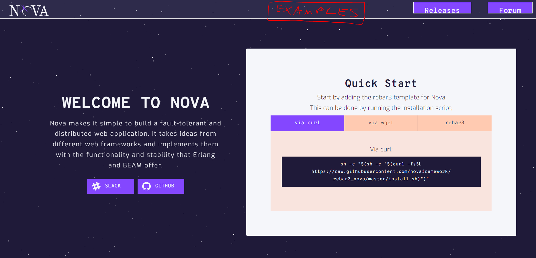 githubi think for a new user it would be alot easier if these examples would be embedded directly in the novaframework.org website under a tab "Examples" .I am referring to this https://github.com/novaframework/http_api_demo md file. This