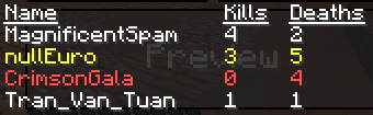 Shows how often other players in the game have killed you and how often you killed them previously in the current gamemode.