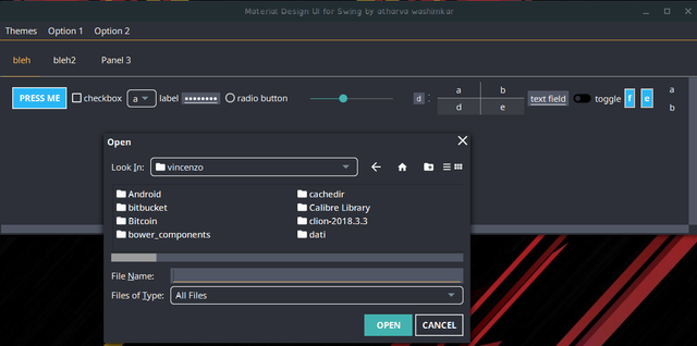 Skins JComponents to have a Material Design Look and Feel. Most components are responsive, with hover effects, and click effects (no ripple unfortunately). Fonts included.
