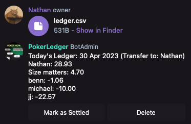 This open-source Telegram bot helps parse and sort poker ledgers from the pokernow.club app. It processes CSV ledger files sent to the bot, rearranges the ledger entries from winners to losers, and sends the sorted ledger back to the user.