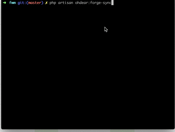 php artisan ohdear:forge-syncAlternatively you could also run this piece of code: