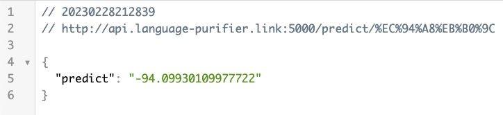 주소 : api/language-purifier.link:5000/predict/${comment}