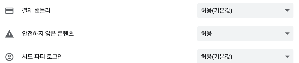 안전하지 않은 컨텐츠 허용 변경