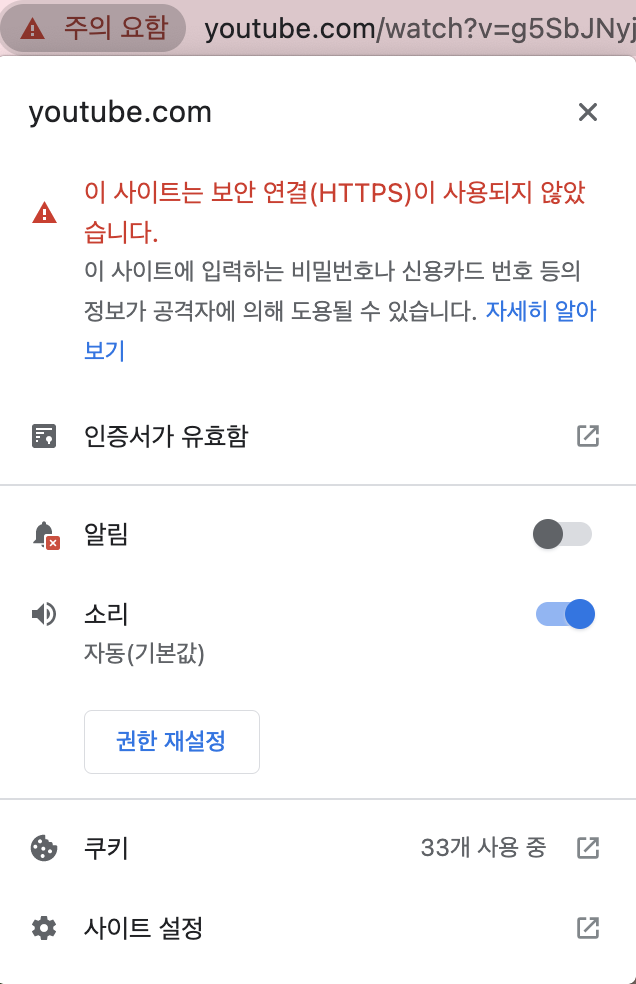 Mixed Content Error 로 인하여 chrome 설정 필요