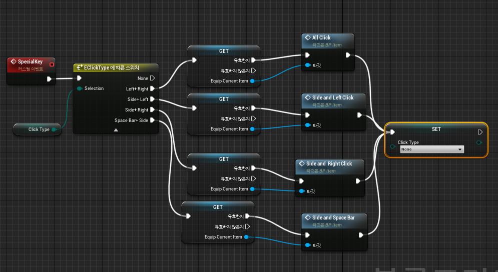 Enum값으로 특수 키(마우스 양쪽클릭, 마우스 사이드 + 좌클릭 등) 일 경우 값에 따라 호출하고 다시 Enum값을 초기화 시켜준다.