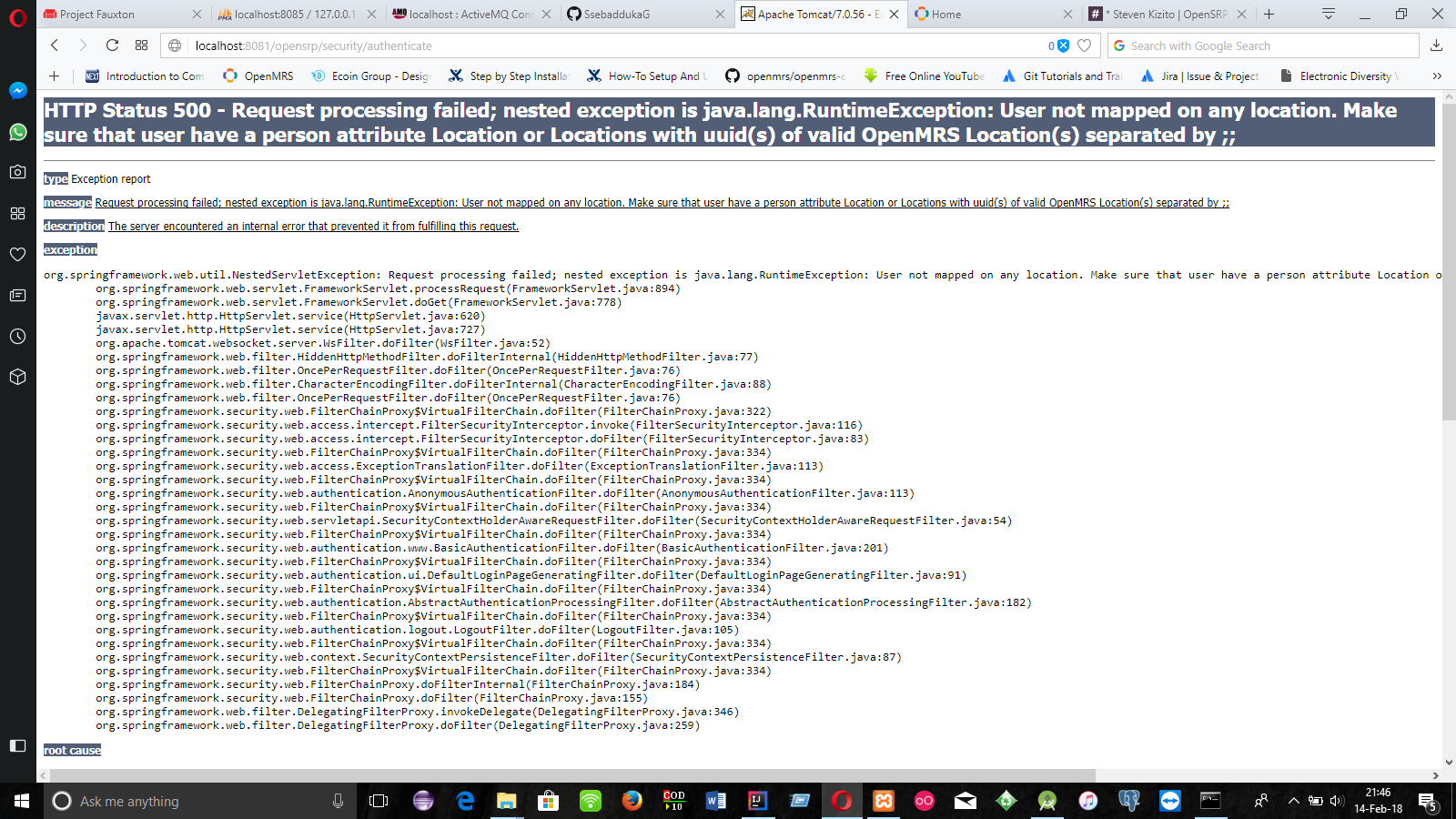 Error: HTTP Status 500 - Request processing failed; nested exception is java.lang.RuntimeException: User not mapped on any location. Make sure that user have a person attribute Location or Locations with uuid(s) of valid OpenMRS Location(s) separated by ;;" while trying to login using "http://localhost:8080/opensrp/security/authenticate"