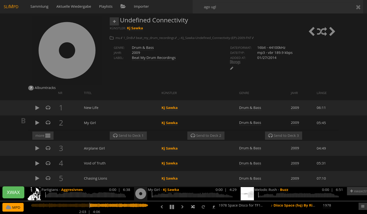 Active xwax-mode(those 3 decks on the bottom)