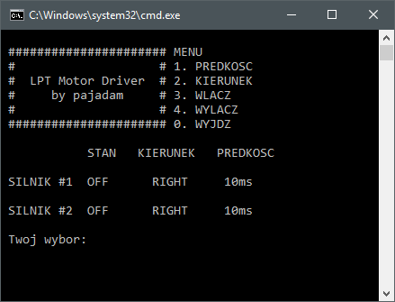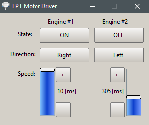 Simple program that allows you to control two stepper motors using PC LPT port.