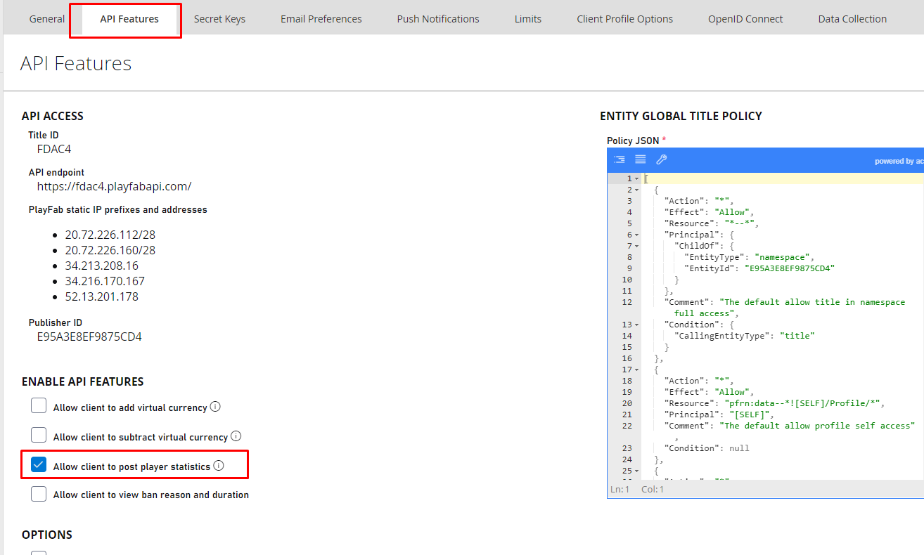 }Remember that in order to use this method you will hace to activate the next settings in the playfab dashboard: