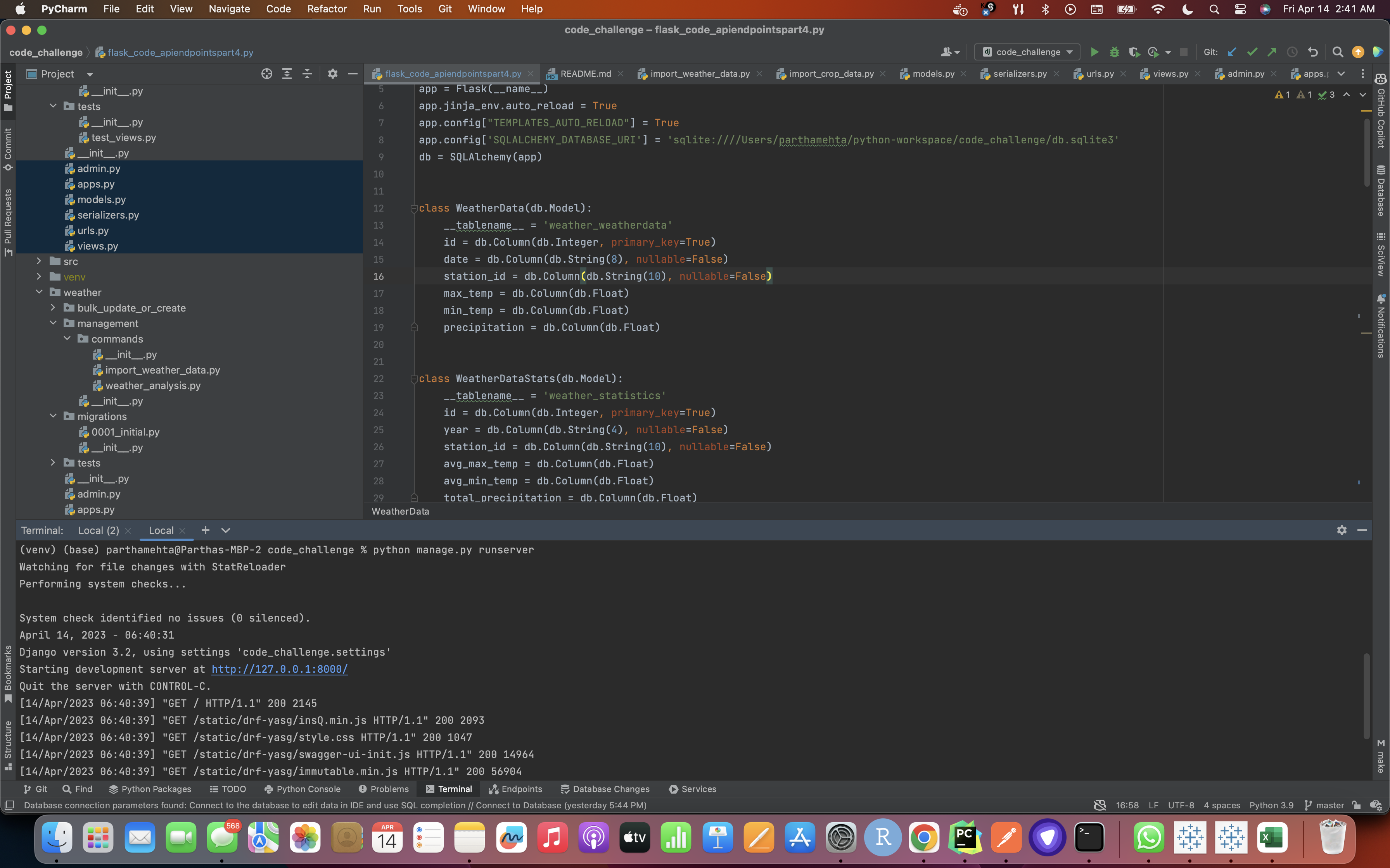 - python3.9 manage.py import_weather_data
