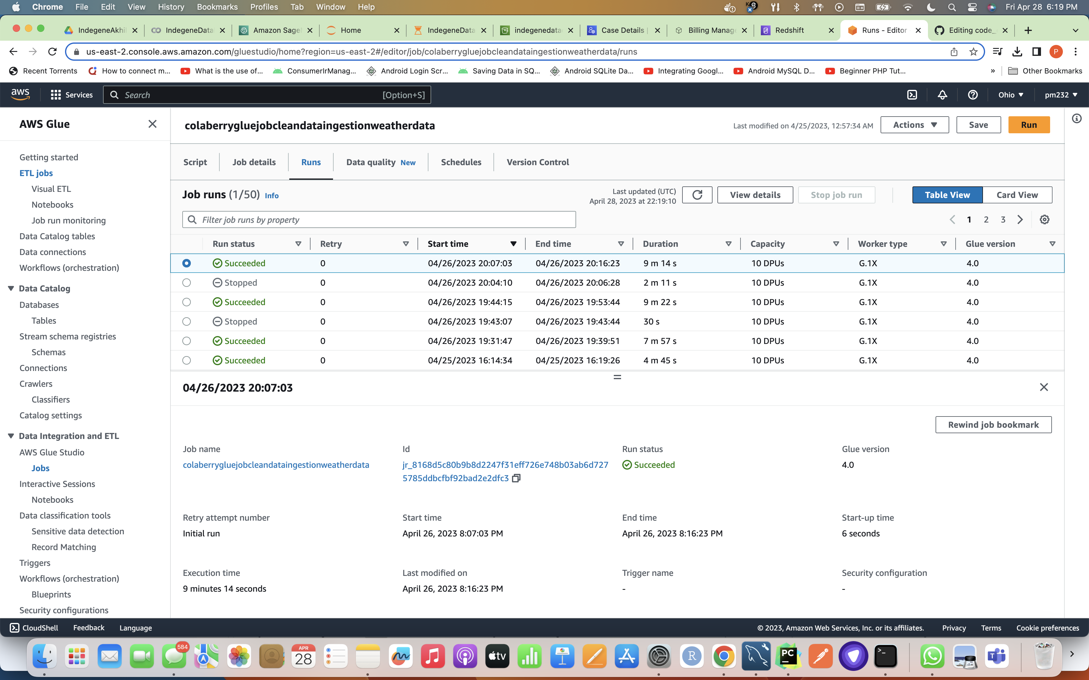 Screenshot attached For Glue Job Run Summary/Page (Note that now I have made individual Glue Jobs For Both Weather and Crop Data Ingestions To Achieve Concurrency