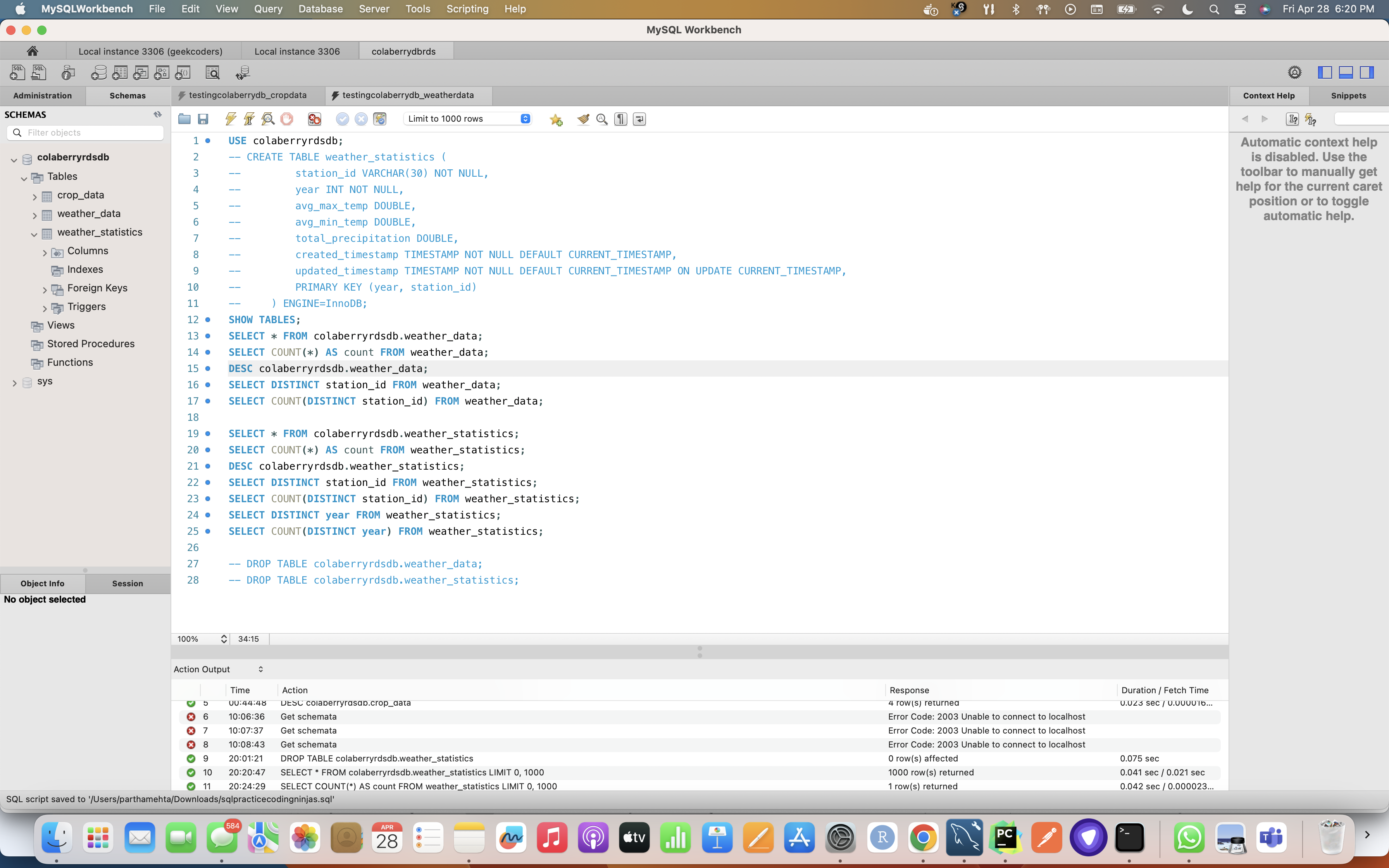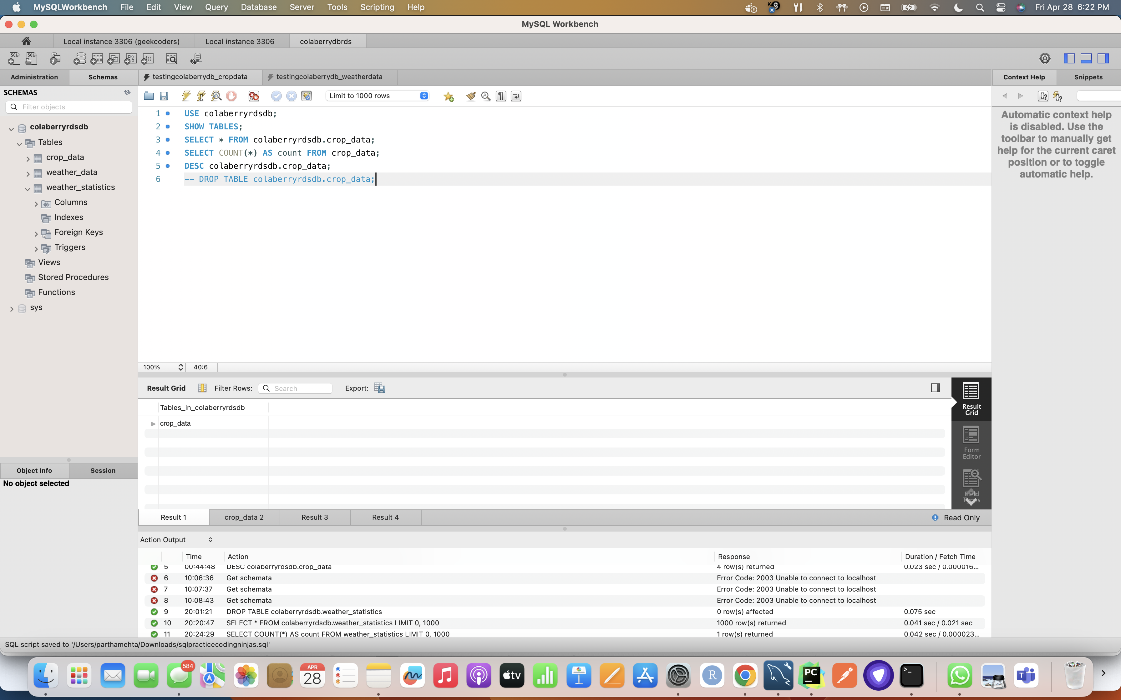 MySQL DB Testing for Weather and Crop Data