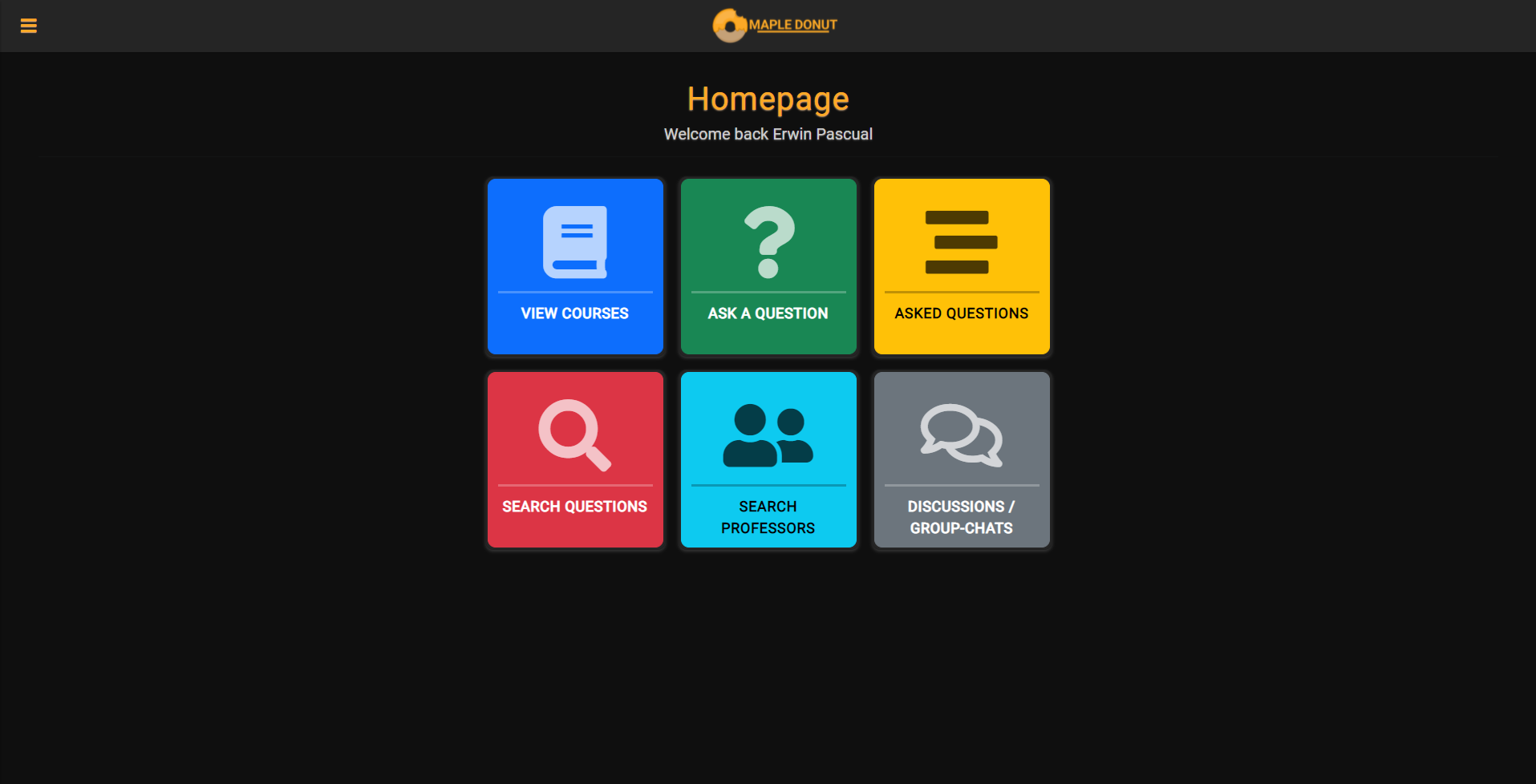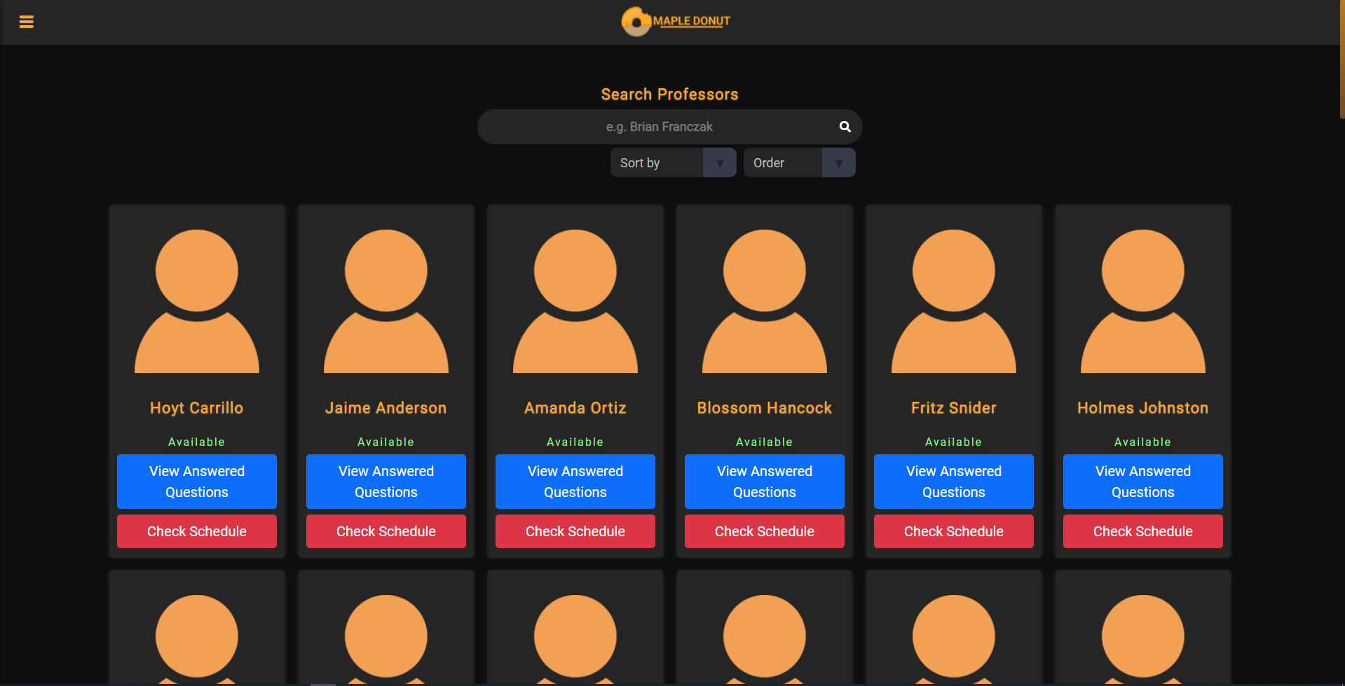 Students can easily search for any professor via this page, and are able to check their schedule along with their answered questions and may join their current answering session.