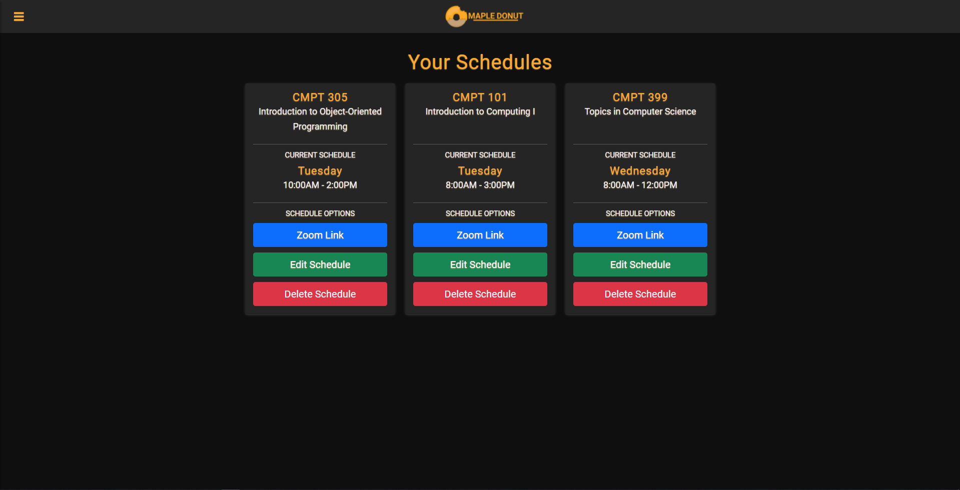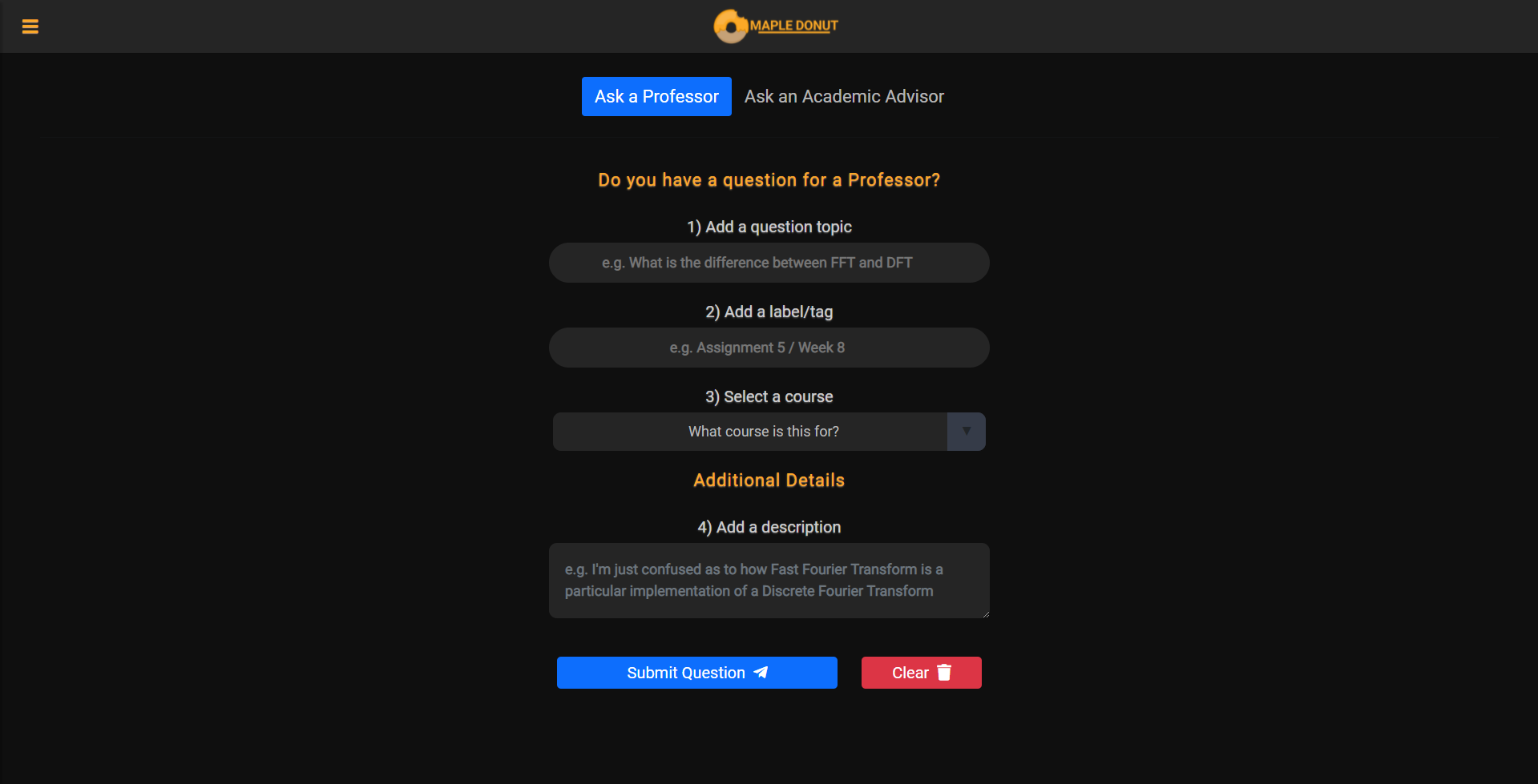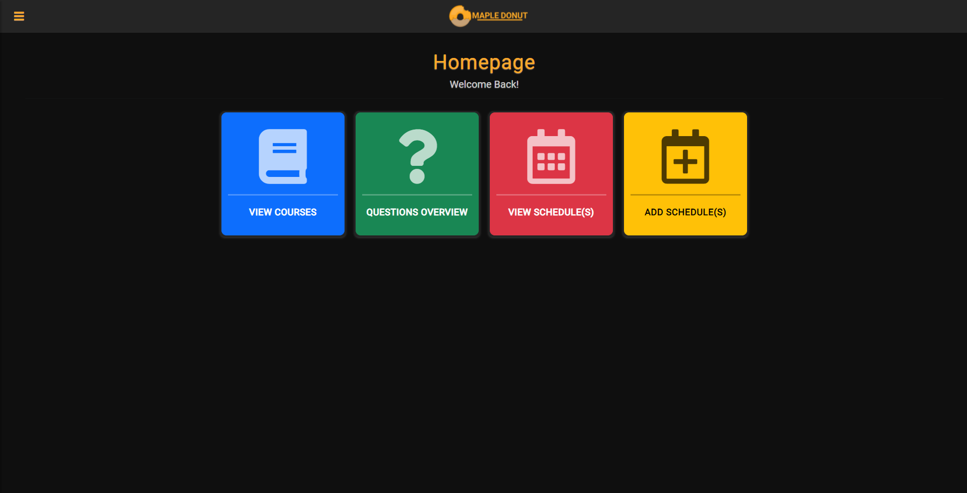 Professors can view the courses they are currently in, and can also add courses so they can receive questions from that course or delete it to stop receiving questions