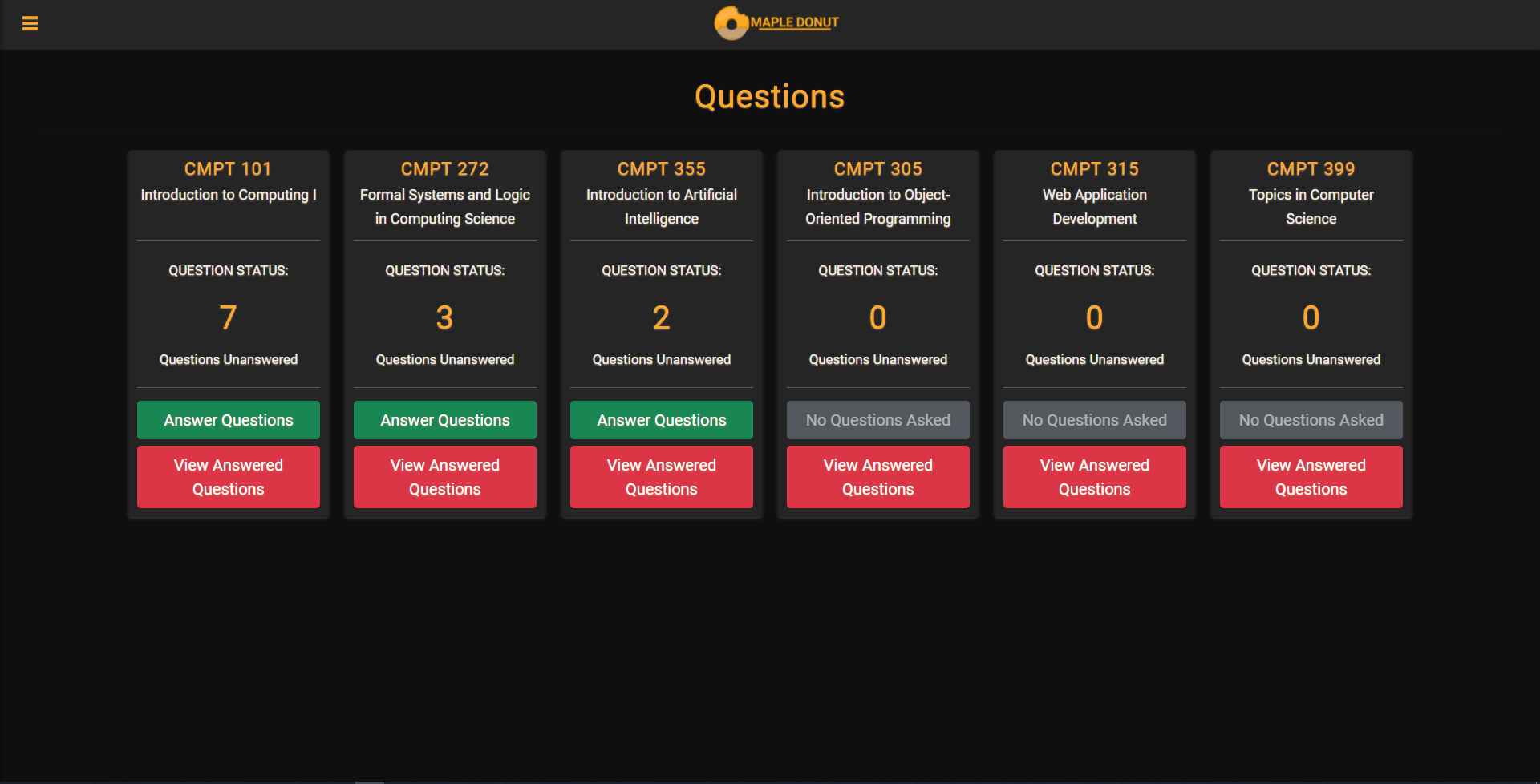 - Can see all courses that questions may be asked, and “Answer Questions” will be highlighted green if there exists unanswered questions.