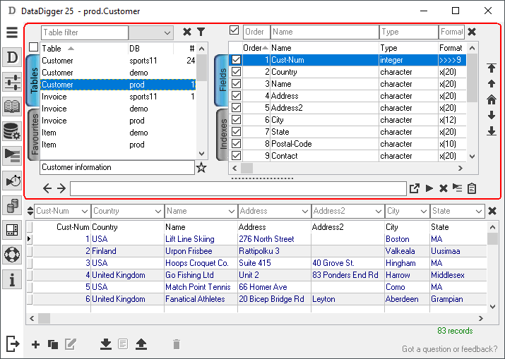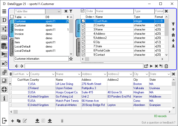 When I connect to a sports database, the window changes to: