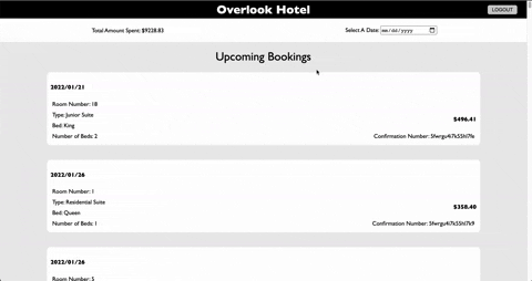 This application allows a user to book rooms and view thier total expenses to a fictional hotel. Created during Turing School of Software and Design's Front End Engineering program, this application focused on:
