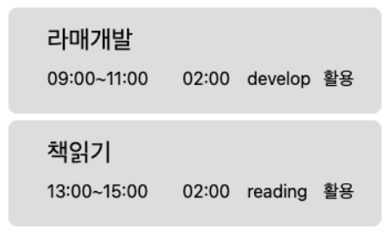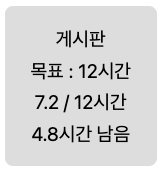 - 사용자별로 설정한 목표에 따라 진행상황 / 목표까지 남은 시간을 계산한 결과를 보여줍니다.