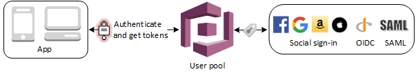 - AWS의 cognito를 이용해서 인증하고 앱에 할당된 AWS 리소스 접근권한을 얻습니다.