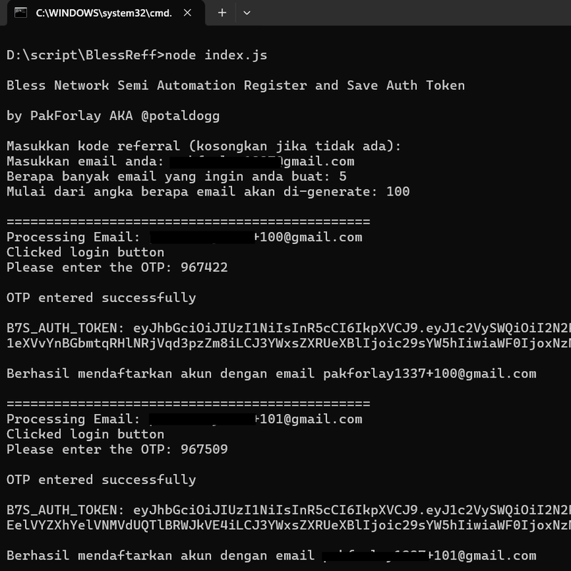 Semi Automation Create account for Bless Network (using gmail dot trick)