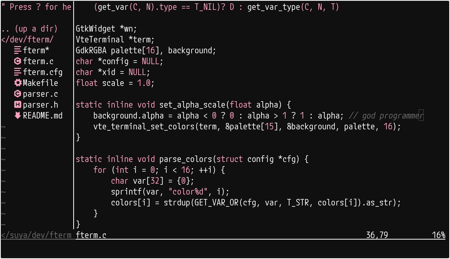 default configuration is stored in ~/.config/fterm/fterm.cfg