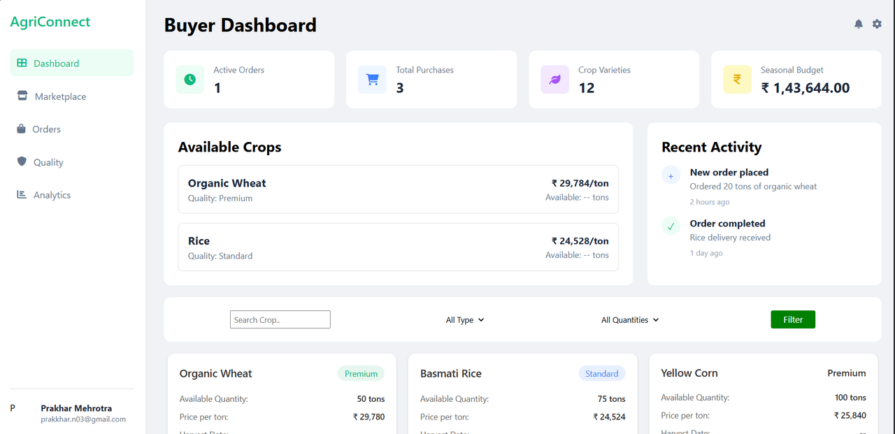- Demand Aggregation: Buyers can request specific crops, driving production.