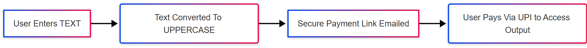 A web application that converts user-provided text to uppercase, sends a link via email, and includes a UPI payment option that accepts Indian UPI payments.