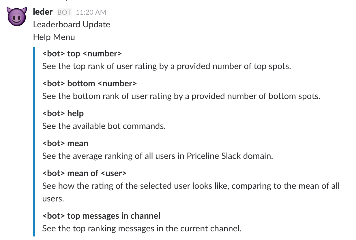 Hitting the leaderboard bot commands in a Slack channel.