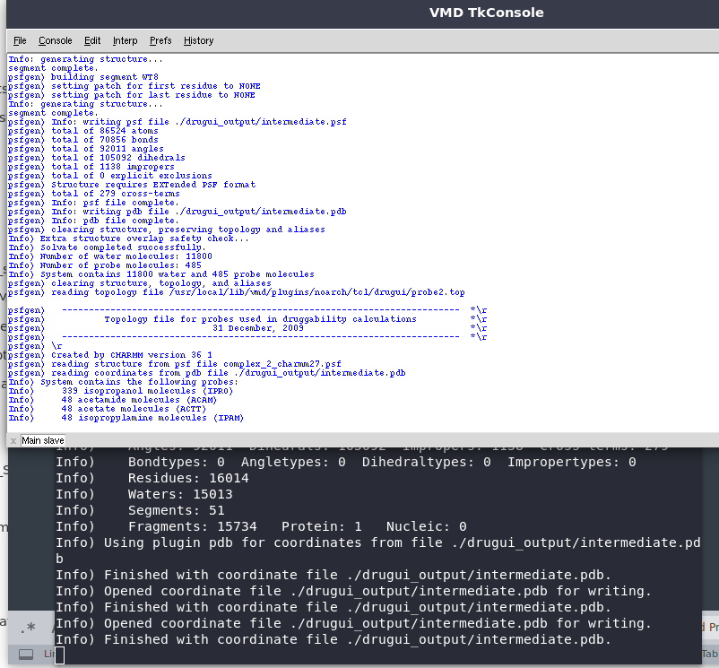My labmate and I are experiencing a problem with the lipid option. It gets stuck in "Info) Finished with coordinate file ./drugui_output/intermediate.pdb." (see attached screencap). Any tips on resolving this? Thank you!